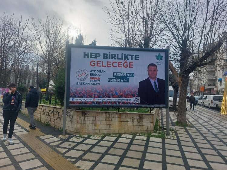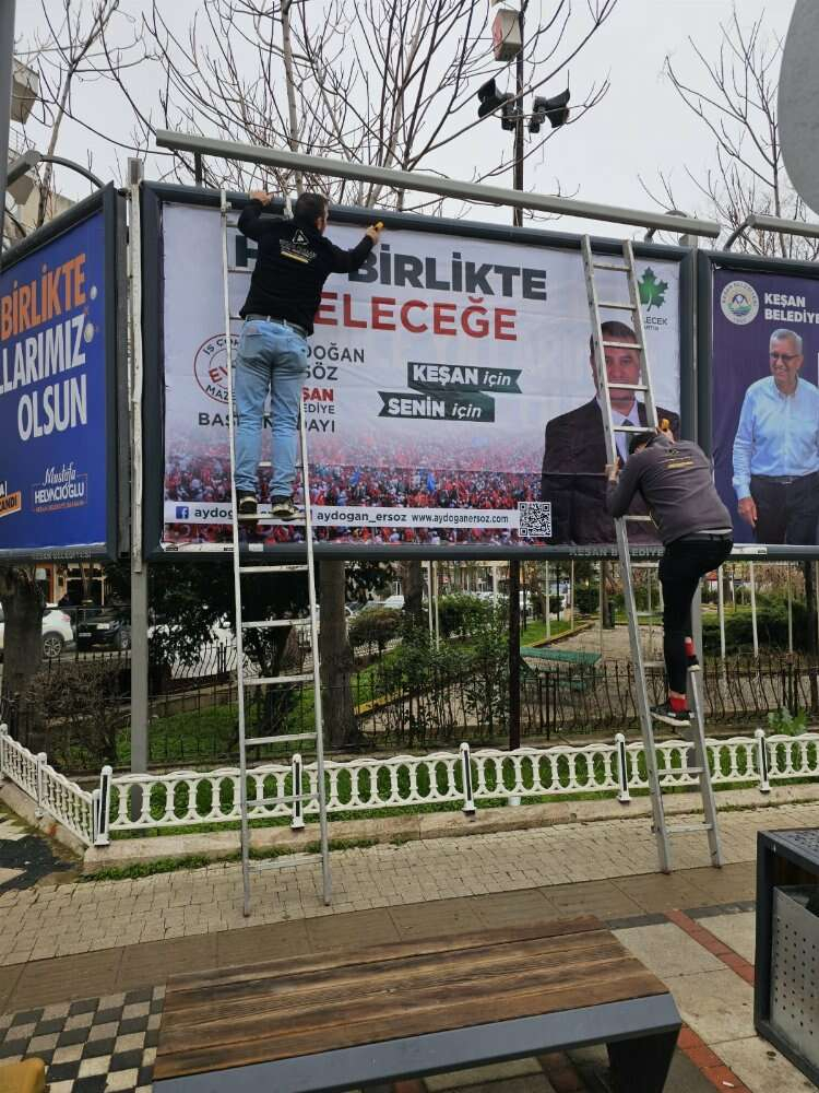 Türkiye’de 31 Mart 2024 tarihinde düzenlenecek Mahalli İdareler Seçimleri öncesi Edirne’nin Keşan ilçesinde Gelecek Partisi Keşan Belediye Başkan Adayı Aydoğan Ersöz, billboardlara asılan afişlerinin kaldırılmasına tepki gösterdi.