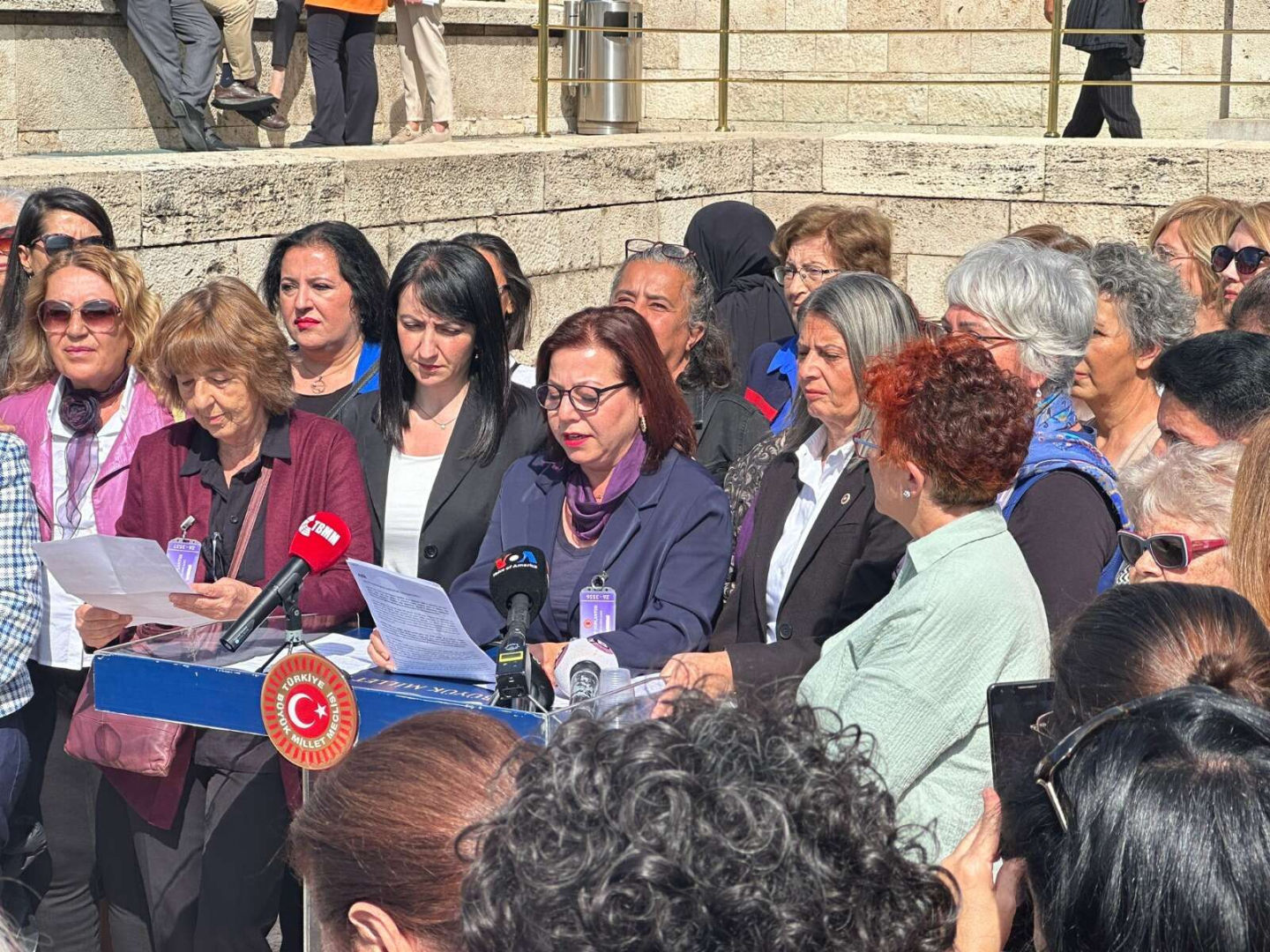“Eşitlik ve özgürlükten yana kadın vekillerle birlikte kadın erkek eşitliğinin bir demokrasi meselesi olduğunu, kadına ve haklarına saygı duymayanların yapacaklarını söyledikleri yasal değişikliklerle geleceğimizi belirlemesine, hayatlarımızı, umutlarımızı ve özgürlüğümüzü gasp etmesine izin vermeyeceğimizi dile getirmek üzere buradayız.