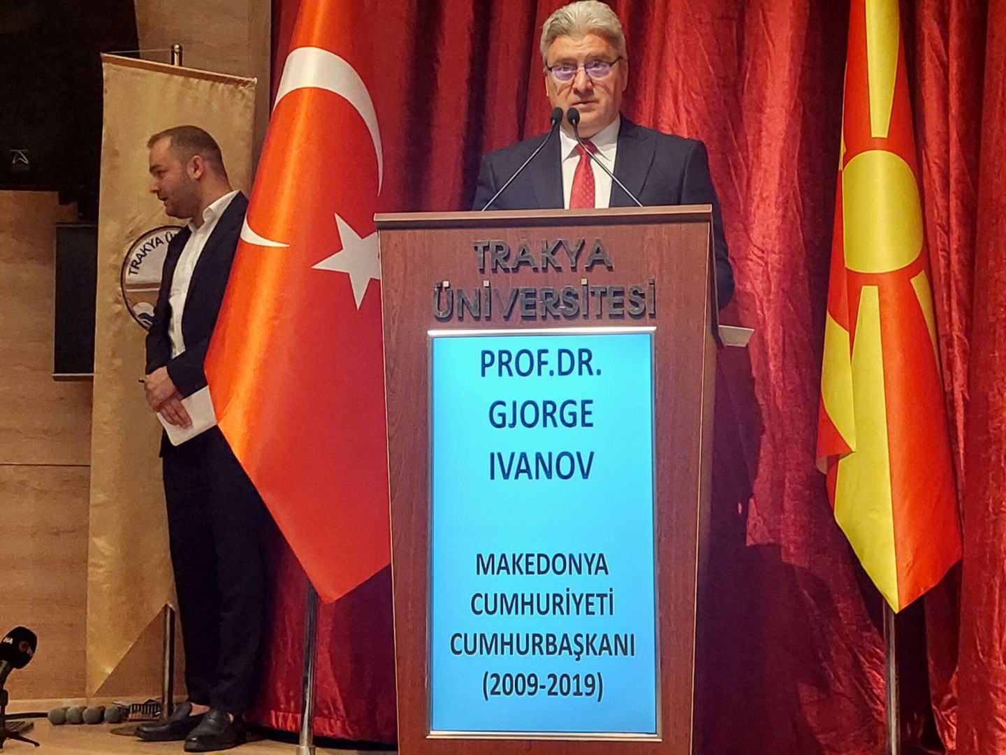 Trakya Üniversitesi tarafından, Trakya Üniversitesi Balkan Kongre Merkezi'nde Makedonya eski Cumhurbaşkanı Gjorge Ivanov, "Müslümanların, Hristiyanların ve Yahudilerin Bir Arada Yaşamalarını Sağlayan Osmanlı Modeli" konferansını gerçekleştirdi. Program ilk olarak saygı duruşu ve İstiklal Marşı, Makedonya Milli Marşı, Trakya Üniversitesi tanıtım filmi, Balkan Senfoni Orkestrası'nın Balkan Müzikleri konseri ile devam etti. Konferansın sonrasında Ivanov'a Fahri Doktora Takdim Töreni gerçekleştirildi. Programa Edirne Valisi Yunus Sezer, Trakya Üniversitesi Rektörü Prof. Dr. Erhan Tabakoğlu, Makedonya eski Cumhurbaşkanı Gjorge Ivanov, Edirne İl Emniyet Müdürü Onur Karaburun, Edirne İl Jandarma Komutanı J. Alb. Hacı Ali Büber, Edirne İl Kültür ve Turizm Müdürü Kemal Soytürk, rektör yardımcıları, akademisyenler ve öğrenciler katıldı.