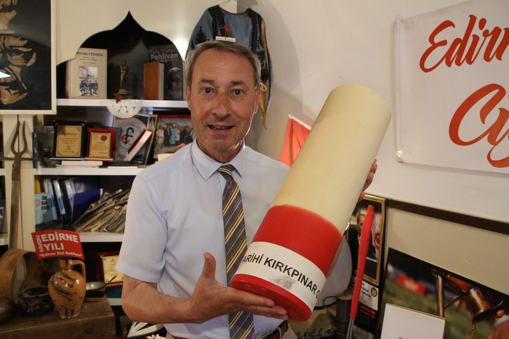 Edirne'yi Tanıtma ve Tava Ciğeri Kalite Kontrol Derneği Başkanı ve Edirne Turizm Elçisi Bahri Dinar yaptığı açıklamada, Kırkpınar'ın tanıtımına katkı sağlamak için dükkanında objelerin yer aldığı bir köşe oluşturduğunu söyledi.
