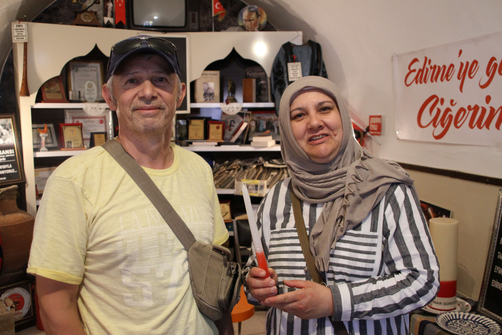 "Kırkpınar gelmeden başlıyoruz heyecanını yaşamaya. Dünyanın en büyük organizasyonlarından birisi Edirne'de yapılıp da biz esnaflar heyecanlı olmaz mıyız? Burada bir Kırkpınar köşesi oluşturduk. Edirne'ye gelen misafirlerimiz yemeklerini yerken içeride küçük objeler var. Kırkpınar mumu, tarihi Kırkpınar marşı, davulu, zurnası, ağa kıyafetinin olduğu köşeyi geziyorlar. Çok da memnun oluyorlar. Biz de burada küçük bir tanıtım yapıyoruz kendilerine. Tüm esnafımız Kırkpınar'ın tanıtıma katkı sağlıyor. Bakıyoruz bir eczanenin camında görüyoruz Kırkpınar objesini, bir kahvenin köşesinde görüyoruz bu çok güzel bir şey."