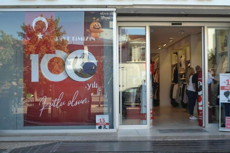Bayrak süslemelerinin yanı sıra bazı tekstil ürünleri satan mağazalar da vitrinlerinde sergiledikleri ürünleri sadece kırmızı beyaz giysilerden oluşan kıyafetleri sergiliyorlar. Vitrinlerini kırmızı beyaz ürünlerle süslemenin öncülerinden olan Edirneli esnaf Hakan Işıklar, “Cumhuriyetimizin 100’üncü yılı, en özel yıllardan biri o yüzden ekstra bir hazırlık yaptık. Vitrinlerimizi kırmızı beyaz yaptık. Özel bir yıl biz de böyle özel hazırlandık” dedi.