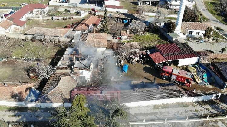 Daha sonra ihbar üzerine olay yerine İtfaiye, jandarma ve sağlık ekipleri sevk edildi. İtfaiye ekiplerinin müdahalesiyle yangın söndürülürken, küle dönen ev ise kullanılamaz hale geldi. Ayrıca, evde bulunan tüplerin patlamaması için dışarıya taşındı.