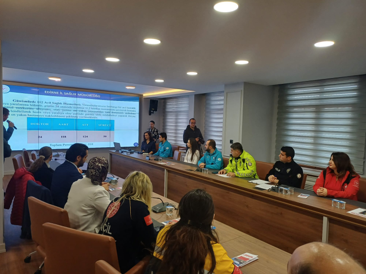 Yıldırım'ın yaptığı sunumda Edirne'nin vaka ulaşım oranlarının yüksekliği dikkat çekerken, bu oranlarla Türkiye'nin en iyi şehirlerinden biri olduğu vurgulandı. 2024 yılında, Edirne'de, 112 Acil Çağrı Merkezi'ne toplamda 47 bin 607 vaka bildirimi geldiğini belirten Yıldırım, bu sayının yüzde 98'ine 10 dakika içerisinde ulaşıldığını aktardı.