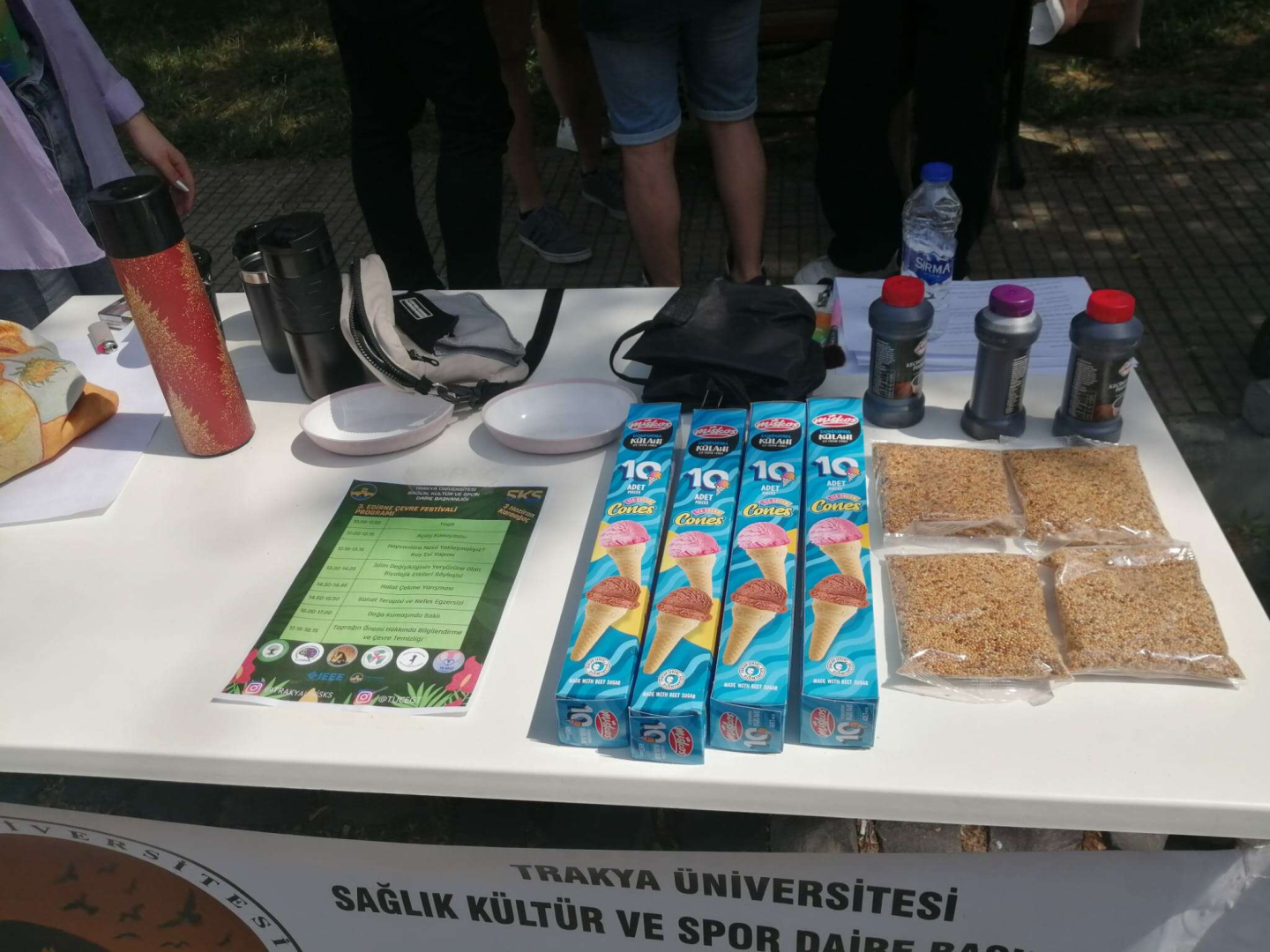 Trakya Üniversitesi Hayvan Dostları Topluluğu Genel Kurul Başkanı Furkan Tunç ise, kuşlar için kuş yemliği yapmaya geldiklerini söyledi. Tunç, “Günümüzün en büyük sorunu köpeklere yaklaşmak. Kalabalık köpek gruplarının yanından geçerken nasıl davranılacağını bilinmediği için, bu bilinci oluşturmaya çalışıyoruz. Bir köpeğe nasıl yaklaşılır ya da sinirli, agresif bir köpek görüldüğünde oradan nasıl uzaklaşılır? Kalabalık köpek gurubu gördüğünüzde orada nasıl hareket edilmeli? Bir kediniz varsa ona nasıl davranmalısınız? Vücut dili size neler anlatıyor? Bu gibi konuları ele alarak, bilgilendirme ve kuşlar için yemlik yaparak farkındalık oluşturmaya çalışıyoruz” şeklinde konuştu.