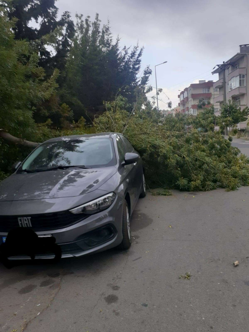 Tekirdağ Kapaklı İsmetpaşa Mahallesi Cumhuriyet Caddesi ve Gaziosmanpaşa Caddesi arasında kalan 61. Sokak üzerinde park halinde bulunan otomobilin üzerine ağaç devrildi.