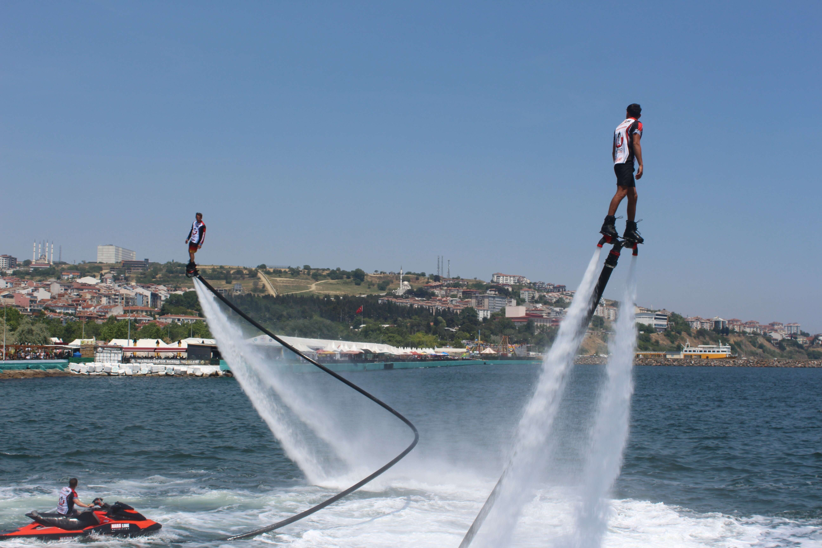 Kendilerini izleyenlere yaklaşarak vatandaşlarla selamlaşan sporcular, denizin üzerinde adeta bir martı gibi süzüldü. Flyboard gösterisini gerçekleştirilen ve alanında Türkiye şampiyonu olan Kahraman Aktaş'ın gösterisini ilgiyle takip eden vatandaşlar, heyecan dolu gösteriyi beğendiklerini ifade etti.