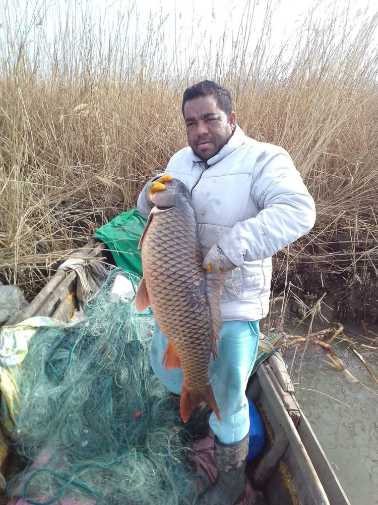 Balıkçılar bir süre sonra ağları toplarken 18 kilogramlık sazan balığının ağlara takıldığını fark etti.