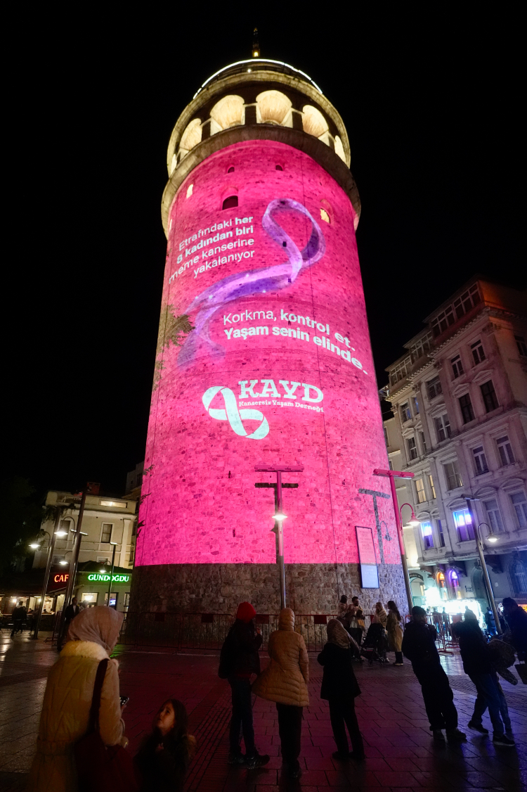 Bu kapsamda kentin simge noktalarından Galata Kulesi meme kanserinde farkındalığı artırmak için pembe renge büründü.