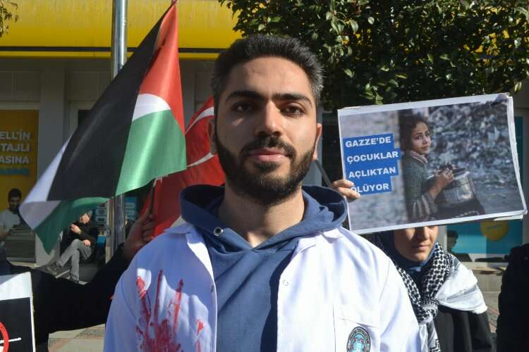 Trakya Üniversitesi Tıp Fakültesi 3’üncü sınıf öğrencisi Muammer Morkoç’un okuduğu açıklamada İsrail mallarına boykot etme çağrısı yenilendi. Açıklamada; “İsrail terör devletinin Filistin’de uyguladığı sistematik zulüm ve işgal devam ediyor. Evler okullar, hastaneler bombalanıyor. Gazze halkı abluka altında açlığa mahkum ediliyor. Su vanalarını kapatan, tarlaları bombalayan ve kente gıda girişlerini engelleyen İsrail, bunları tüm dünyanın gözü önünde, saklamaya dahi gerek görmeden alenen gerçekleştiriyor. Gazze halkının un bulamadığı için hayvan yemlerini öğütmeye başladığı haberleri geliyor. Bombaların, kitle imha silahlarının dehşetinden kurtulabilen insanlar, yetersiz beslenmenin, susuzluğun, salgın hastalıkların pençesinde ölüme mahkum ediliyor. Dünyanın en büyük açık hava hapishanesi olan Gazze’ye açılan tek kapı ‘Refah Sınır Kapısı’, aynı zalim elin ablukası altında insani yardımlara neredeyse hiç geçit vermiyor. Buradan haykırıyoruz; Refah Kapısı mutlaka açılmalıdır. Devletimizi, sivil toplum kuruluşlarımızı, milletimizi ve tüm insanlığı bu konuda ses vermeye davet ediyoruz. Bu duyarlılıkla gerçekleşen tüm adımlara, bildirilere, yürüyüşlere olan desteğimizi de dile getirmek istiyoruz. Devam eden bir şey daha var. İsrail işbirlikçisi devletlerin ve şirketlerin, soykırıma olan aleni desteği artarak sürüyor. Bir avuç mazlumun karşısında bütün dünya zalimleri tek safta saldırmaya devam ediyor. Gönlü ve duası Filistin’in yanında olan vicdan sahiplerinin ise en büyük silahlarından birisi Boykot. Hayatımızın her alanında ve mesleklerimizde ‘boykot’ çağrımızı tekrarlıyoruz. Tüm meslektaşlarımıza zulme destek olan ilaç firmalarını boykota devam etmeyi hatırlatıyor, Sağlık Bakanlığı yetkililerinden de aynı hassasiyeti hastane eczanelerinde göstermesini bekliyoruz” denildi.