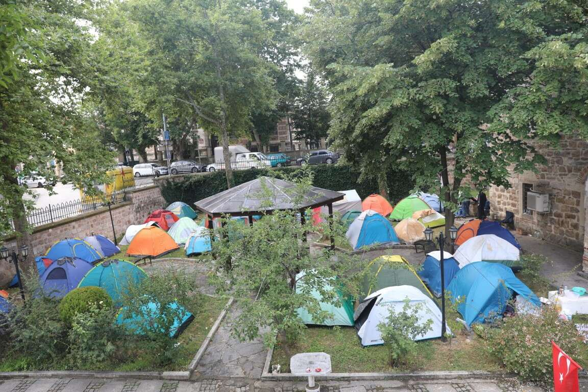 ÇADIR KURANLARDAN CAMİ BAHÇESİNDE "YER PARASI" ALINDIĞI İDDİASI