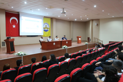 İktisadi ve İdari Bilimler Fakültesi Fehmi Yıldız Konferans Salonu'nda düzenlenen programda, genç girişimciler Barış Barsan, Taha Elmalı ve Güney Sevindik iş yaşamları hakkında bilgi verdi.