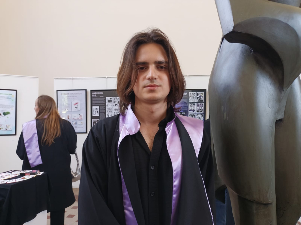 Grafik Tasarımı, Heykel, İletişim ve Tasarımı ile Resim bölümlerindeki mezun olan öğrencilerin eserlerinin yer aldığı sergide, Heykel Bölümü’nden mezun olan Umut Berke Özcan’ın mezuniyet eseri dikkat çekti. Edirne’de Heykeltıraş Müslüm Özcan’ın oğlu olan Umut Berke Özcan, babası ile atölyede çalışarak başladığı heykeltıraş olma yolunda önemli bir adım atarak Heykel Bölümü’nden mezun olurken; heykele olan ilgisiyle ilgili basın mensuplarına açıklama yaptı.