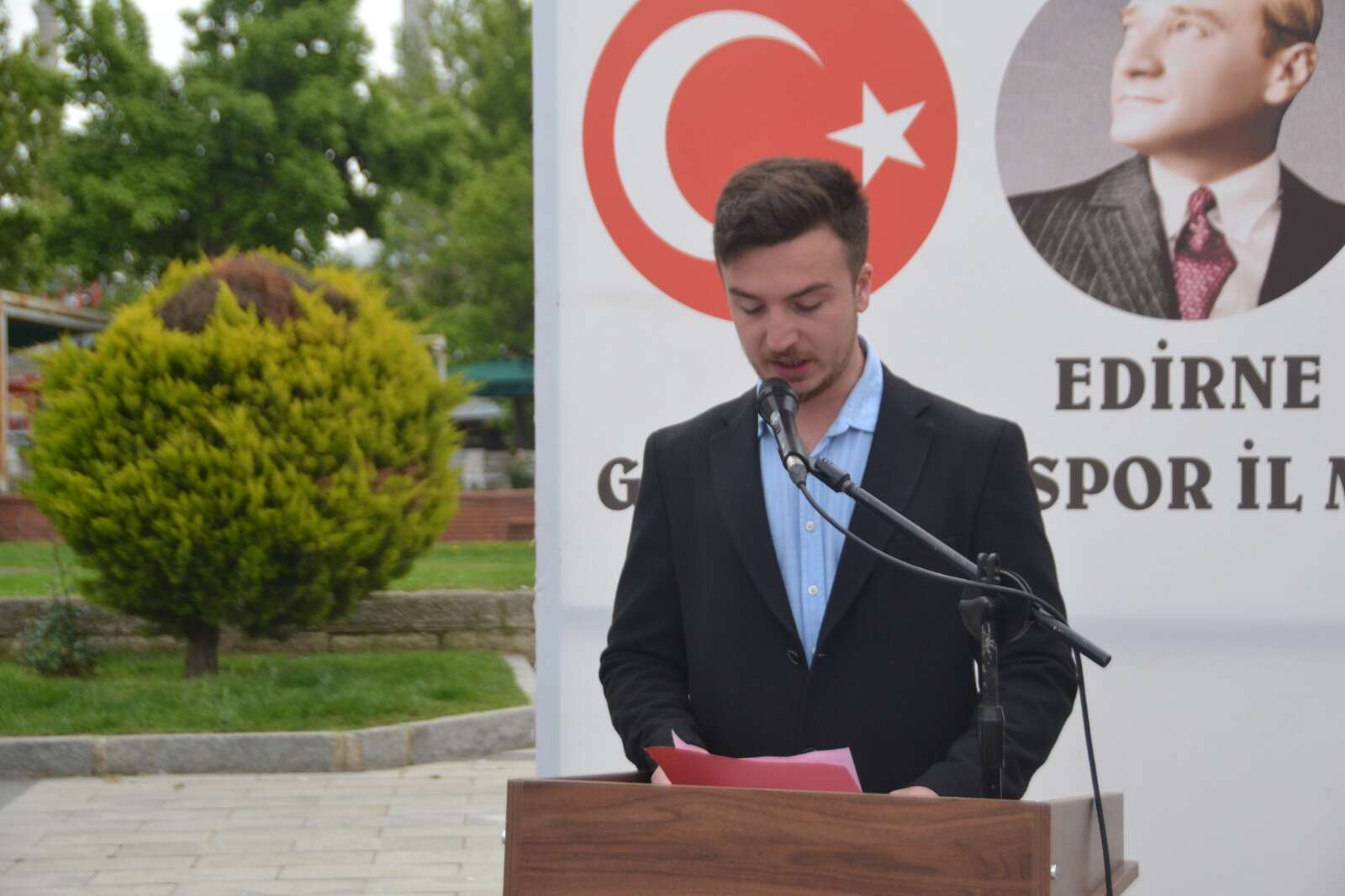 Törene Gençlik ve Spor İl Müdür Vekili Zekeriya Bayrak, şube müdürleri, , Sanayi ve Teknoloji İl Müdürü Salih Akbulut, Türkiye Muharip Gaziler Derneği Edirne Şube Başkanı Ahmet İsmailoğlu, gençler ve gaziler katıldı Tören, Atatürk Anıtına çelenk sunulması, saygı duruşu ve İstiklal marşı, gençlik adına konuşma ile gerçekleşti.