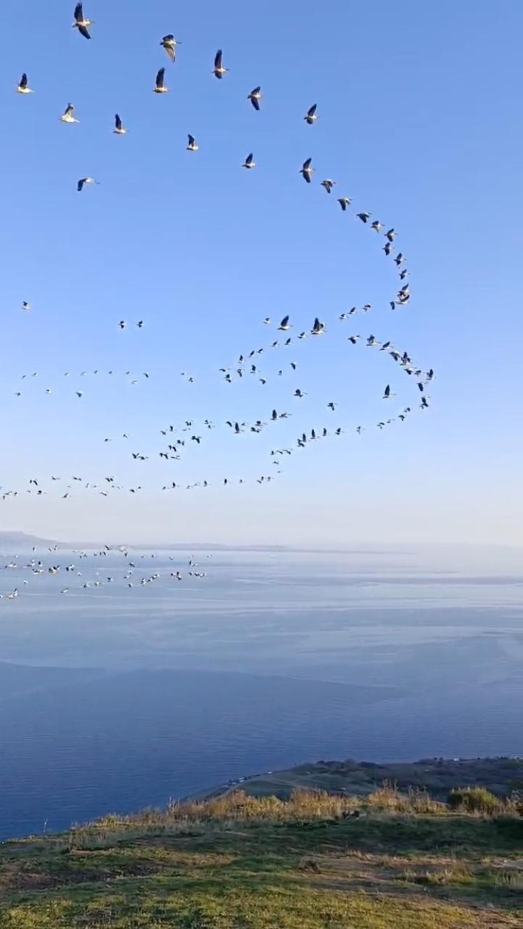 Şarköy semalarında sürü halinde süzülen pelikanlar, gökyüzünde adeta bir koreografi sergiledi. Dakikalarca devam eden bu eşsiz görsel şölen, bölge halkını hayran bıraktı. Güneş ışığının kanatlara yansımasıyla adeta altın gibi parlayan kuşlar, göç yolculuklarının ilk durağında kısa bir mola vererek gökyüzünde süzülmeye devam etti.