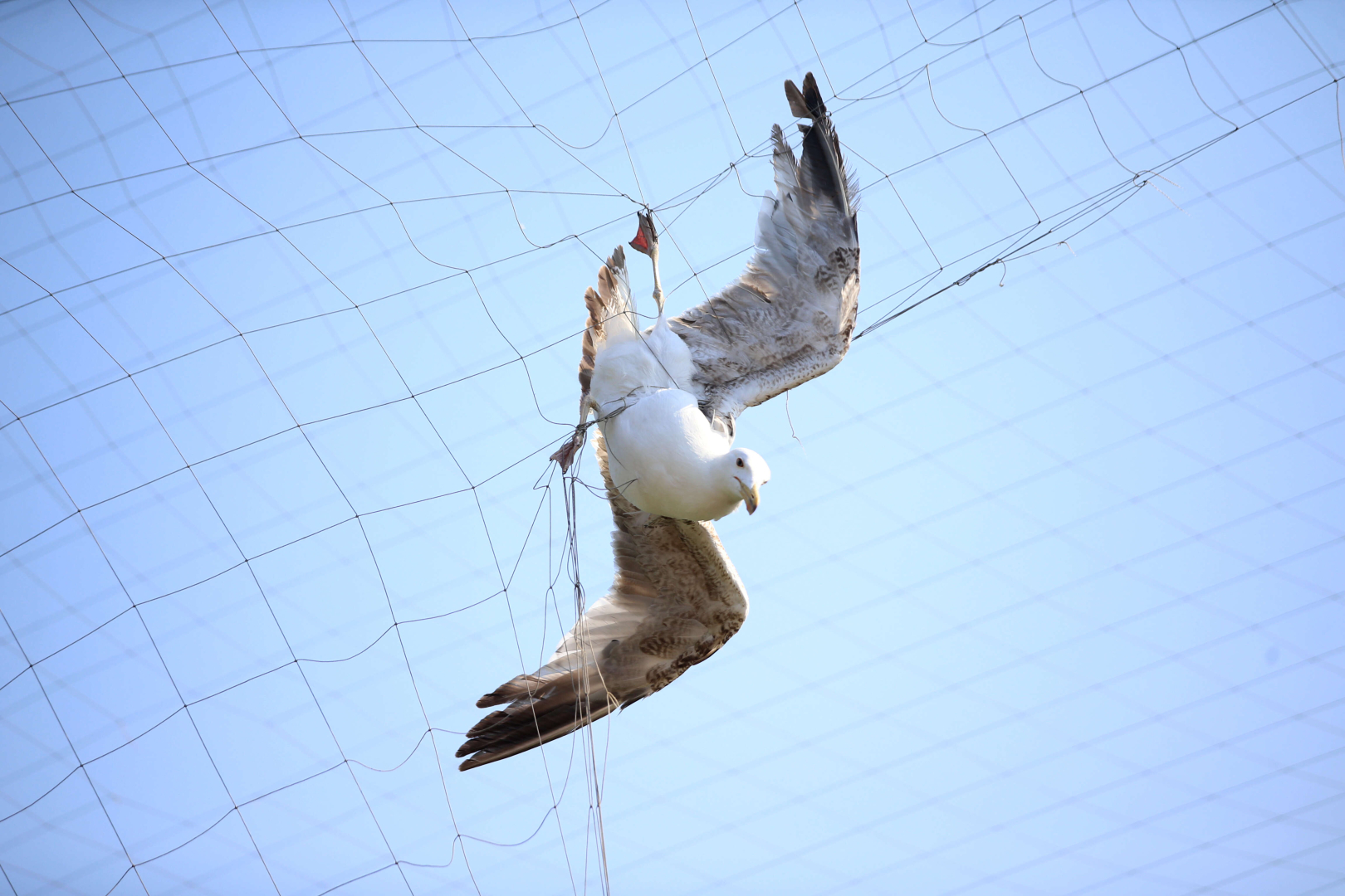 Kuşun ayağı ve boynuna takılan ipleri kesen itfaiye ekipleri, ardından martıyı salıverdi.