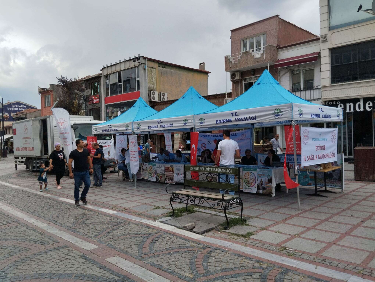Edirne İl Sağlık Müdürlüğü Halk Sağlığı Hizmetleri Başkanlığı, Türkiye’de her yıl 3-9 Eylül tarihleri arasında kutlanan Halk Sağlığı Haftası etkinlikleri kapsamında Saraçlar Caddesi’nde stant açtı.