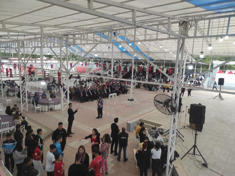 Kutlama programı karate gösterisi, halat çekme yarışması ve öğrencilerin hazırladığı gösterilerin ardından tamamlandı.