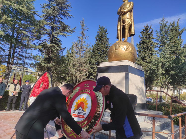 Saygı duruşu ve İstiklal marşının okunmasıyla başlayan tören, Havsa Kaymakamlığı ve Belediye Başkanlığı çelenklerinin Atatürk Anıtı'na sunulmasıyla devam etti.