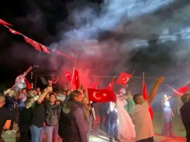 Cumhuriyet’in 100. yılı dolayısıyla havai fişekler ile gökyüzü şenlenirken, bu anlamlı günde bir araya gelen davetliler de Cumhuriyet’in 100. yılını ellerinde bayrakları ile coşkuyla kutladı.