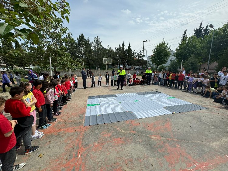 Öğrencilere Trafik Dedektifleri projesi kapsamında trafik güvenliği, yaya geçidi kullanımı ve yaşam kemerinin önemi gibi konularda eğitim verildi. Etkinlik öğrencilere Trafik Andı ve Trafik Dedektifleri broşürleri ile çeşitli hediyeler dağıtılması ile sona erdi.