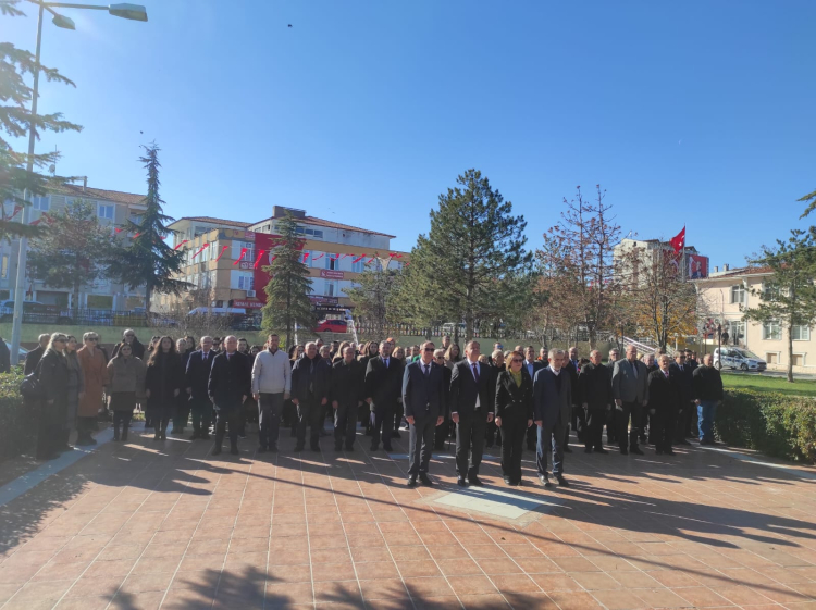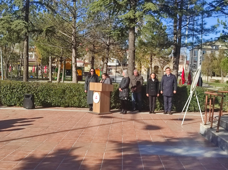 Müdür Fidan tarafından Atatürk anıtına çelenk sunulması ile başlayan tören, Türkiye Cumhuriyeti’nin kurucusu Mustafa Kemal Atatürk, silah arkadaşları ve tüm şehitler anısına 1 dakikalık saygı duruşu ve İstiklal Marşı’nın okunması ile devam etti.