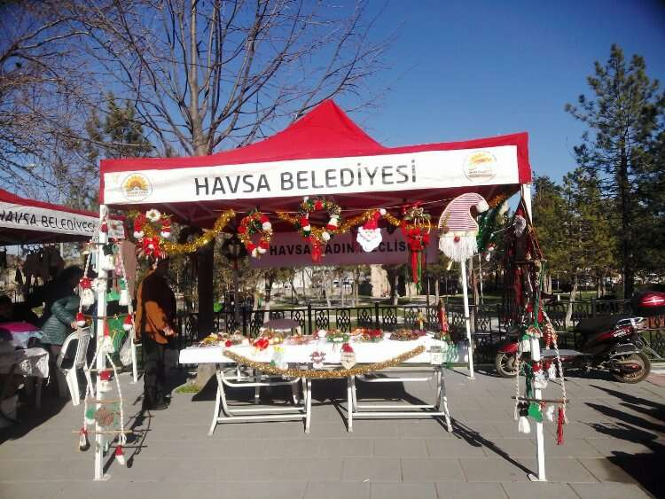 Edirne’nin Havsa ilçesinde Kadın Meclisi Üretici Kadınlar, Havsa Halk Eğitim Merkezi El sanatları Öğretmeni Hümeyra Erçin eşliğinde yaptıkları hediyelik eşyaları satışa çıkardı. Bugün başlayan Yeni Yıl alışveriş günleri yarın da ziyaretçilerini ağırlayacak. Cumartesi günü ise ilçe Meyve Sebze pazarında açık olacak.