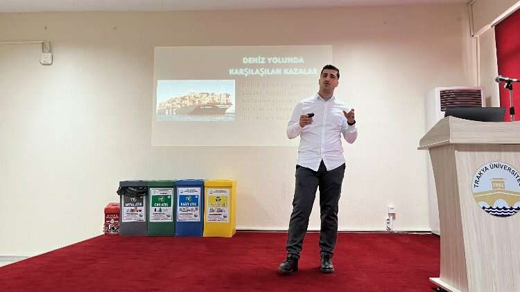 Uygulamada Lojistik Programı öğrencilerinden Fatmanur Hilal Bakan, Sıla Kalmış ve Mehmet Buluthan, Toprak danışman akademisyeni Dr. Öğr. Üy. Elif Gilanlı yönetiminde seminer verdiler.