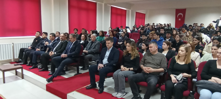 Atatürk İlkeleri ve İnkılap Tarihi Araştırma ve Uygulama Merkezi Müdürü Doç. Dr. Tarık Sarioğlu, "Atatürk Konuşmaları 2: Atatürk ve Çanakkale" başlıklı konferansını, yüksekokulun konferans salonunda katılımcılarla paylaştı.