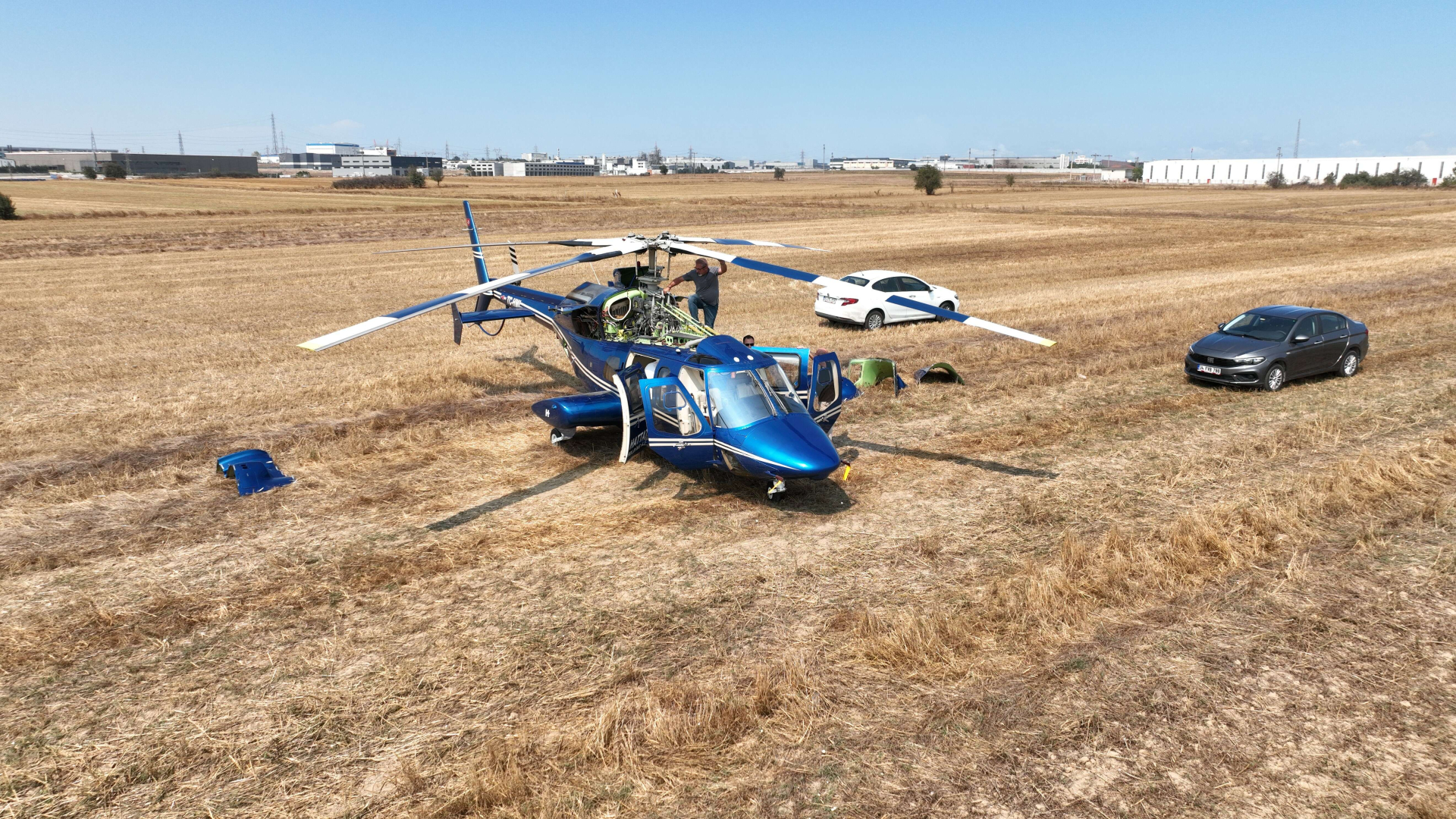 Hattat Holding’e ait TC-HMI kuyruk numaralı İstanbul’dan havalanan helikopter, saat 14.00 sıralarında Tekirdağ Çerkezköy Organize Sanayi Bölgesi’nde faaliyet gösteren Hema Endüstri fabrikasına 2 kilometre kala biçili buğday tarlasına zorunlu iniş yaptı.