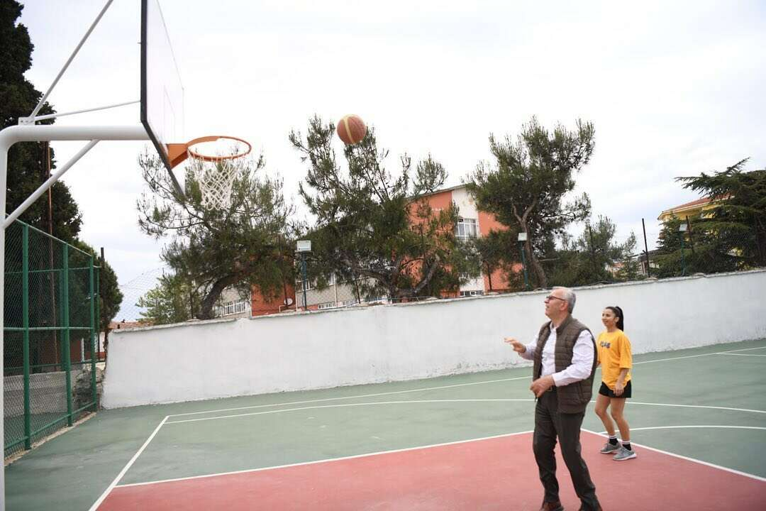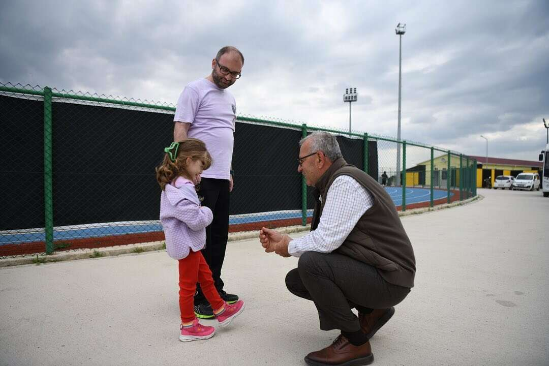 Spor yapan her yaştan vatandaşlarla sohbet eden Helvacıoğlu, bir süre küçük çocuklarla top oynayıp fotoğraf çektirdi.
