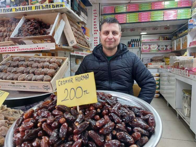 Edirne’nin Saraçlar Caddesi’nde uzun yıllardır kuruyemiş dükkânı işletmeciliği yapan Hakan Çakıcı, bu yıl Ramazan ayında işlerin düştüğünü, gün boyunca 1-2 kişiye hurma satabildiklerini söyledi. 40 çeşit hurmadan sadece 2 çeşit hurma getirdiğini belirten Çakıcı, 3-4 yıldan beri hurmaya yerli vatandaşın talebinin olmadığını, talebin yabancı turistlerde olduğu ifade etti.