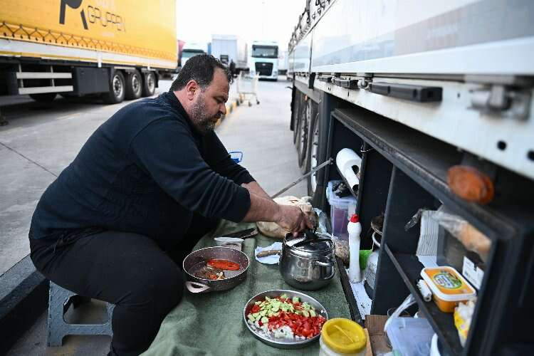 İhraç ürünlerini Avrupa ülkelerine götüren tır şoförleri, yurt dışına çıkmadan iftarlarını sınır kapısındaki tır parkında yapmayı tercih ediyor.