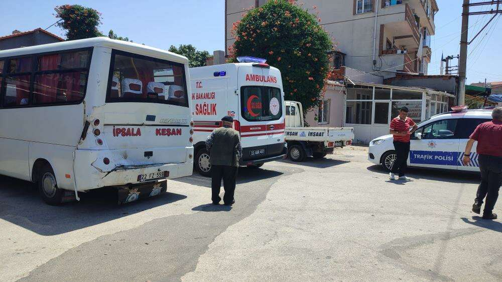 Alınan bilgiye göre, çarşı merkezinden Keşan Meslek Yüksekokulu istikametine giden R.G. (73) yönetimindeki 22 PB 677 plakalı minibüs, önünde giden E.B. (58) yönetimindeki 22 FZ 559 plakalı minibüse arkadan çarptı. Kazanın ardından freni boşalan 22 PB 677 plakalı minibüs, ara sokaktaki duvara çarparak durabildi. Kazada, iki minibüsteki 2 yolcu hafif yaralandı. Yaralılar, ambulanslarla Keşan Devlet Hastanesi'ne kaldırılarak tedavi altına alındı.