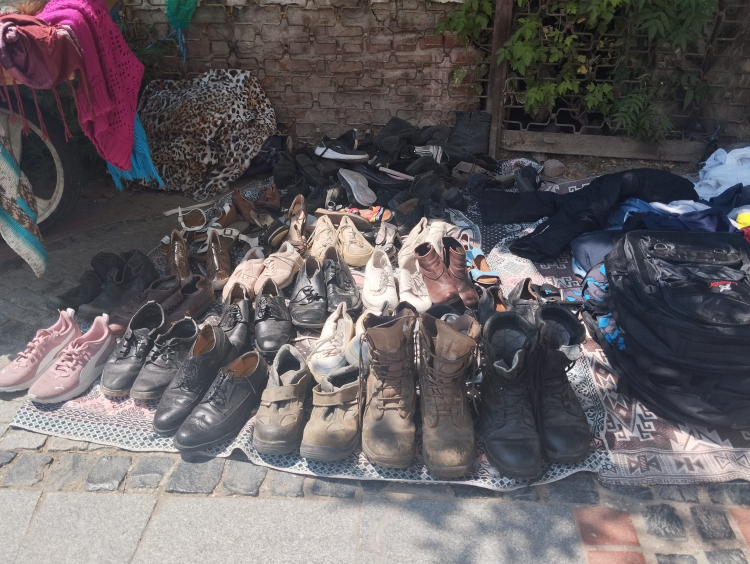 Edirne’de Ulus ve Pazartesi Pazarı yolu üzeri Saraçlar Caddesi’nin alt kısmında ikinci el giysilerin satışının yapıldığı tezgahlar göze çarpıyor.