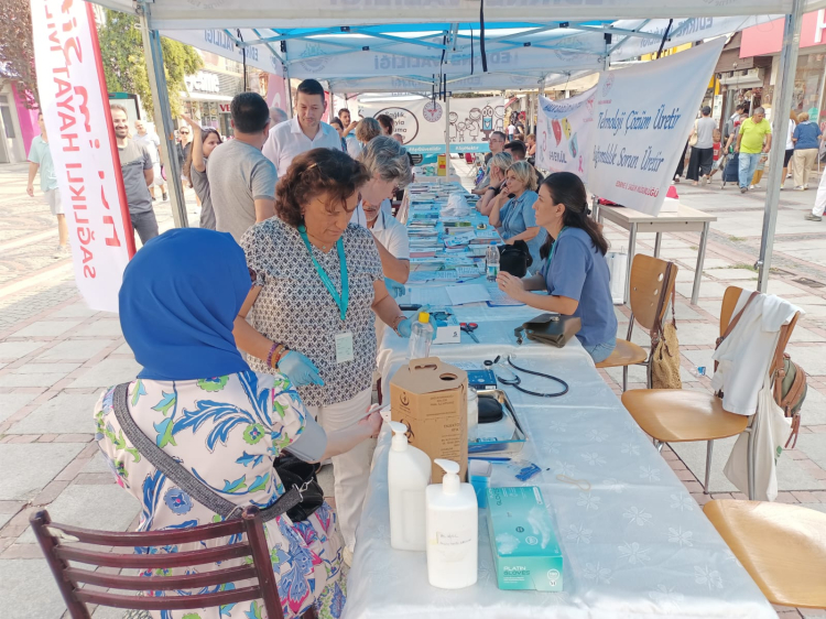 Stantta vatandaşlar için tansiyon, şeker ve karbonmonoksit oranı ölçümü hizmeti verilirken; Kanser Erken Teşhis, Tarama ve Eğitim Merkezlerine (KETEM) ve Sağlıklı Yaşam Merkezlerine başvurmanın önemine de dikkat çekildi.