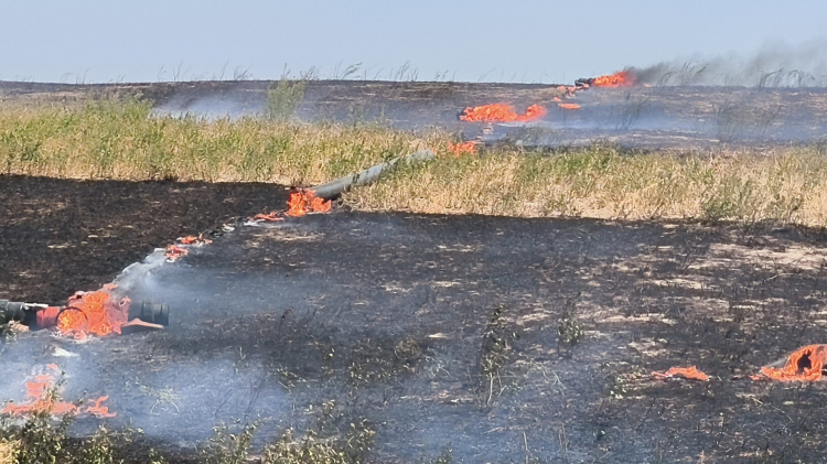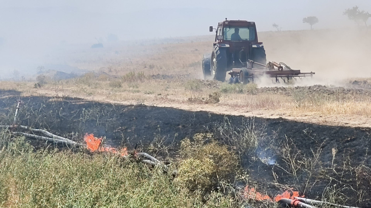 Edirne’nin İpsala ilçesine bağlı Kumdere köyünde anız yangını meydana geldi. Yangında tarım alanlarının yanı sıra bölgedeki bir çiftliğe ait sulama boruları da yandı.