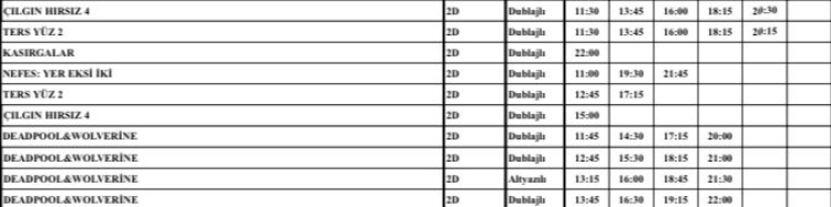 İşte 24- 25 Temmuz 2024 tarihleri arasında gösterimde olacak film listesi: