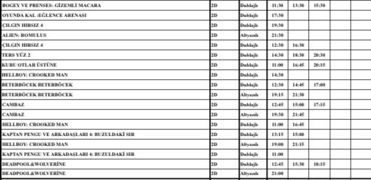 İşte 6- 12 Eylül 2024 tarihleri arasında gösterimde olacak film listesi;