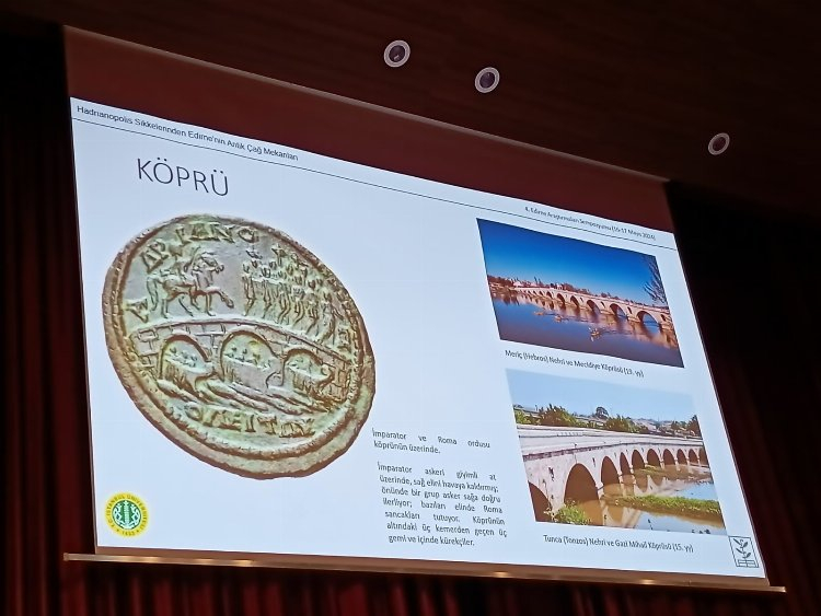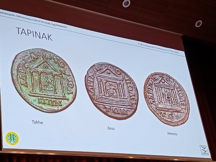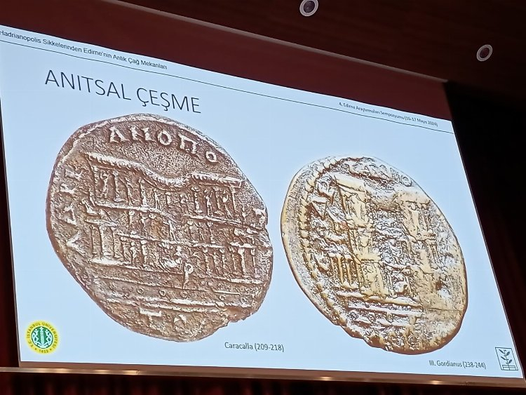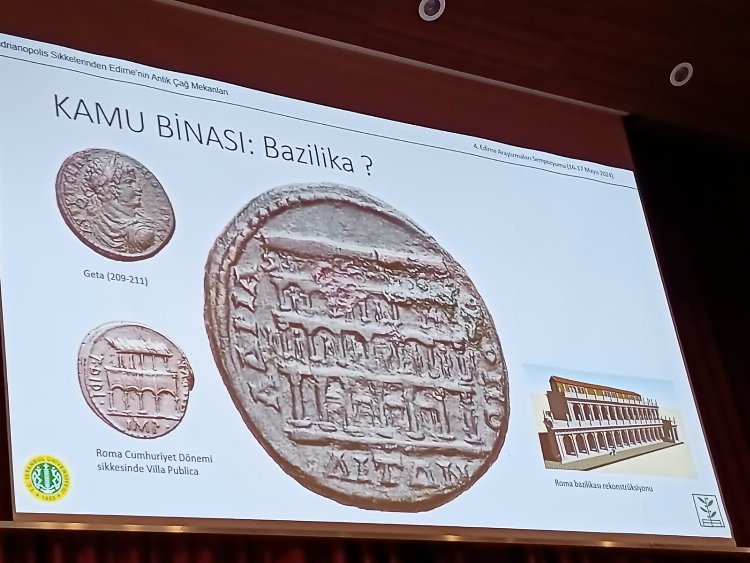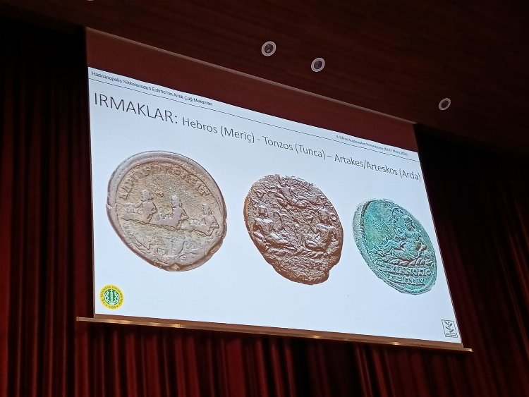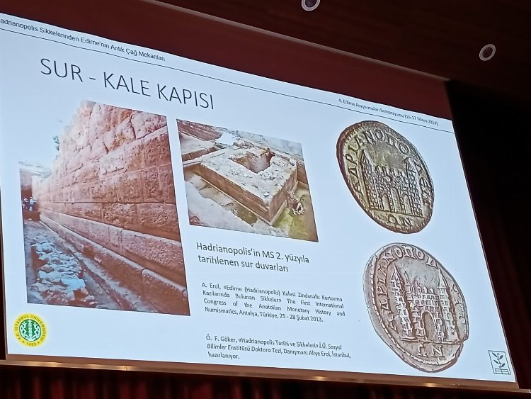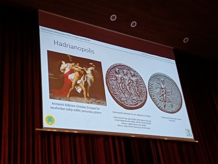 Erol, sunumunda üzerinde Orestes, Iphigenia ve Pylades, Artemis Tauropolos, Meriç, Tunca ve Arda nehirleri, imparator ve Roma ordusunun üzerinde olduğu bir köprü, anıtsal çeşmeler, kamu binası, tapınak, sunak, sur ve kale kapısı bulunan Hadrianopolis sikkelerinden örnekleri paylaştı. Edirne Müze Müdürlüğü tarafından Zindanaltı mevkiinde yapılan kazılarda Roma, Bizans ve Osmanlı dönemlerine ait çok sayıda sikke bulunduğunu da söyleyen Erol, sikkeleri değerlendirerek bilimsel yayına dönüştürdüğünü belirtti. Erol, günümüze 5 binden fazla Hadrianopolis sikkesinin ulaştığını da sözlerine ekledi.