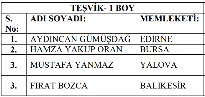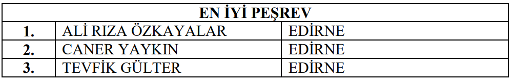 662. Tarihi Kırkpınar Yağlı Güreşlerinde ödül töreni düzenlendi. 3 gün boyunca her kategoride dereceye giren pehlivanlar ve sıralamaları: