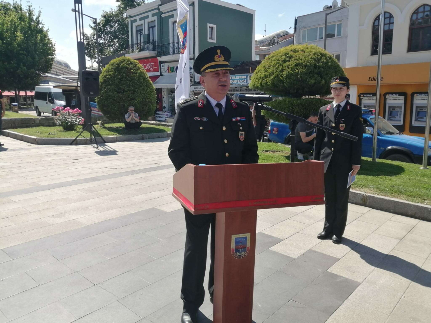 Edirne İl Jandarma Komutanı, Jandarma Kıdemli Albay Suat Dönmez yaptığı konuşmada mensubu olmaktan gurur duyduğunu söylediği Jandarma teşkilatının 184’üncü kuruluş yıldönümünü kutlamanın onur, mutluluk ve heyecanı içinde olduğunu belirterek “Başarılarla dolu 184 yıllık köklü bir tarihe sahip olan Jandarma Genel Komutanlığı, kuruluşundan bu güne kadar yüce milletimizin engin sevgisine mazhar olmuştur. Türkiye Cumhuriyetinin bölünmez bütünlüğünün korunması, milletimizin huzur ve güvenliği için kamu düzenin sağlanması yönündeki hizmetleriyle ulusumuzun her zaman takdirini kazanmıştır.