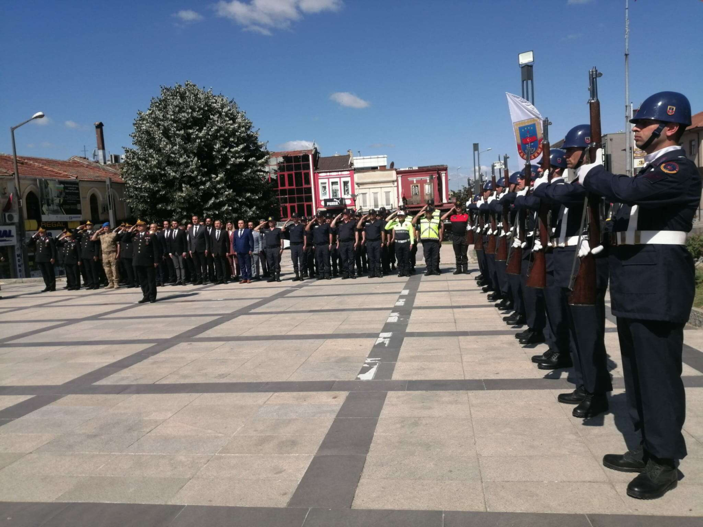 Jandarma teşkilatının kuruluşunun 184’üncü yıldönümü dolayısıyla düzenlenen tören Atatürk Anıtına Edirne İl Jandarma Komutanı, Jandarma Kıdemli Albay Suat Dönmez’in, Jandarma Genel Komutanlığı çelengini sunmasıyla başladı.