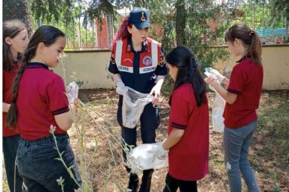 İl Jandarma komutanlığı ekipleri Kavaklı Şehit Varol Çalışkan Ortaokulunu ziyaret edip öğrencilere çevrenin temiz tutulmasına ilişkin bilgi verdi.