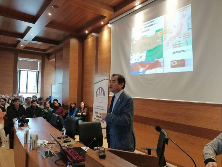 Deprem Uzmanı ve Yüksek Mimar Yoshinori Moriwaki, Trakya Mimarlık Mezunları Derneği ile Trakya Üniversitesi Mimarlık Arayüz Topluluğu’nun düzenlediği Türkiye ve Japonya, 2 ülke arasındaki deprem farkı konulu etkinliğe katıldı.