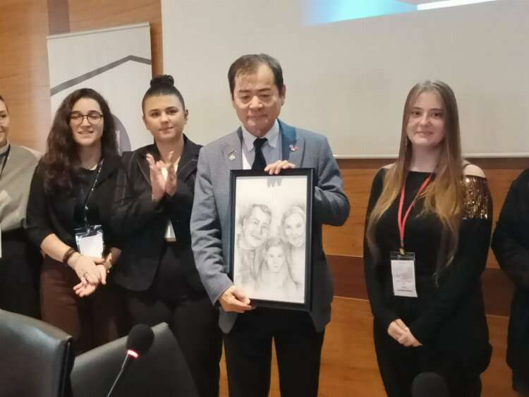 Sunumun ardından Moriwaki’ye akademisyenler ve öğrenciler teşekkür ederken; hediye takdim ettiler. Trakya Üniversitesi Mimarlık Arayüz Topluluğu öğrencileri, Moriwaki’ye karakalem ile çizdikleri portresini hediye ederken; Moriwaki hediyeyi çok beğendiğini belirterek teşekkür etti. Hediye takdiminin ardından konferans sona erdi.