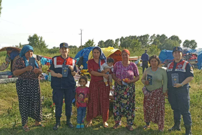 Edirne İl Jandarma Komutanlığı personeli, Meriç ilçesi sorumluluk bölgesindeki çeltik tarlalarında çalışan mevsimlik tarım işçilerini ziyaret etti. Bu ziyaretler sırasında, kadın işçilere 6284 Sayılı Ailenin Korunması ve Kadına Karşı Şiddetin Önlenmesine Dair Kanun hakkında broşürler dağıtıldı. Ayrıca, aile içi şiddetin önlenmesi konusunda bilinçlendirme yapılarak KADES mobil uygulamasının amaçları ve kullanımı hakkında eğitim ve tanıtım faaliyetleri gerçekleştirildi.