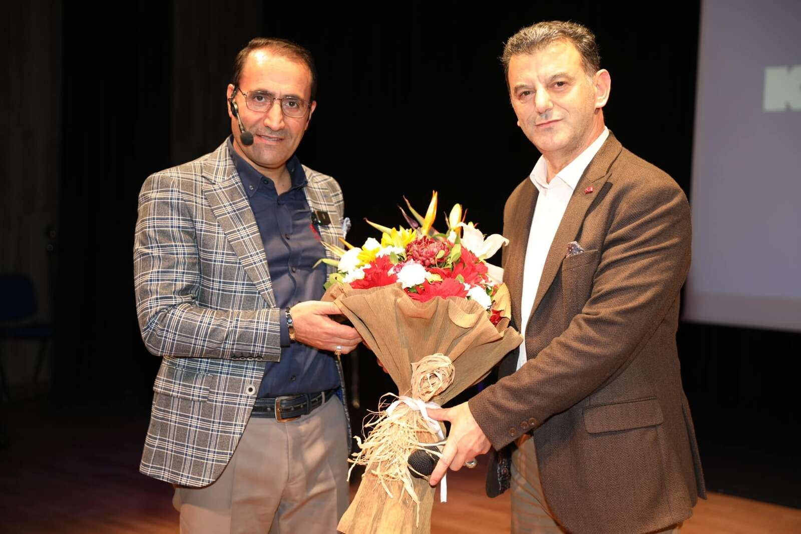 Söyleşinin sonunda Kapaklı Belediye Başkanı Mustafa Çetin, Aslan ve Öğretir’e teşekkür ederek çiçek ve plaket takdim etti.