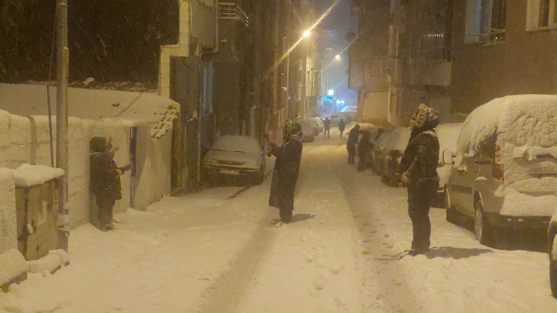 Gece saatlerinde dışarıya çıkan vatandaşlar kar yağışının tadını doyasıya çıkardı.