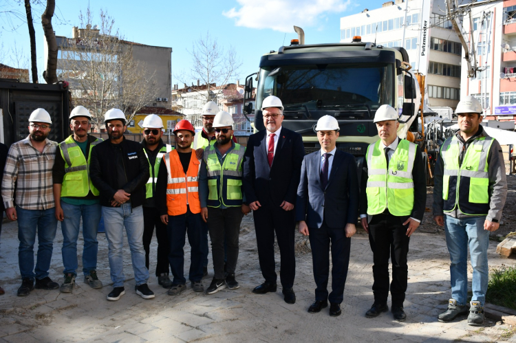 Konuşmanın ardından butona basılarak kent merkezindeki önemli dönüşüm projelerinden biri olan Katlı Otopark ve Belediye Hizmet Ofisleri projesinin temeli atıldı.